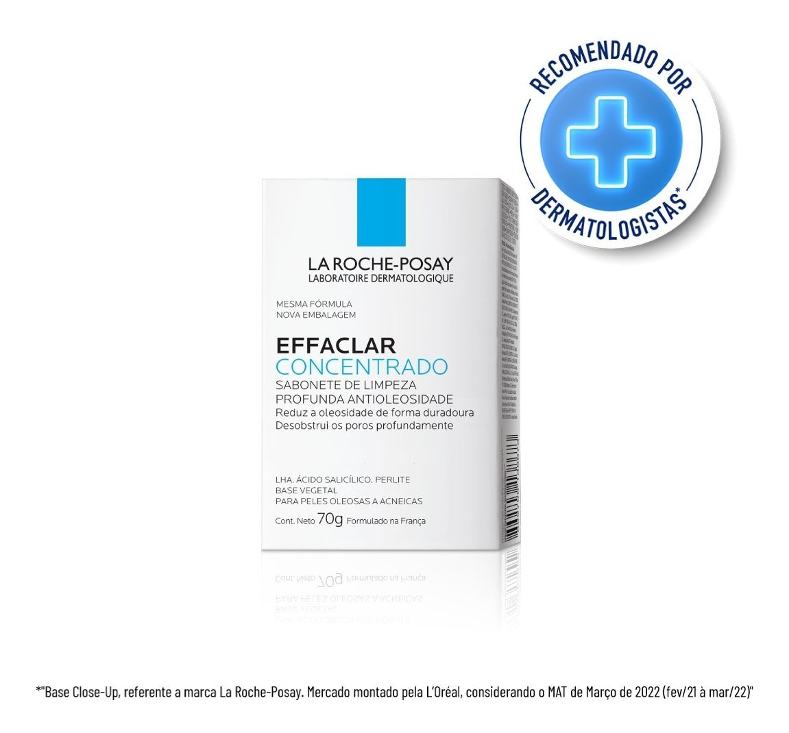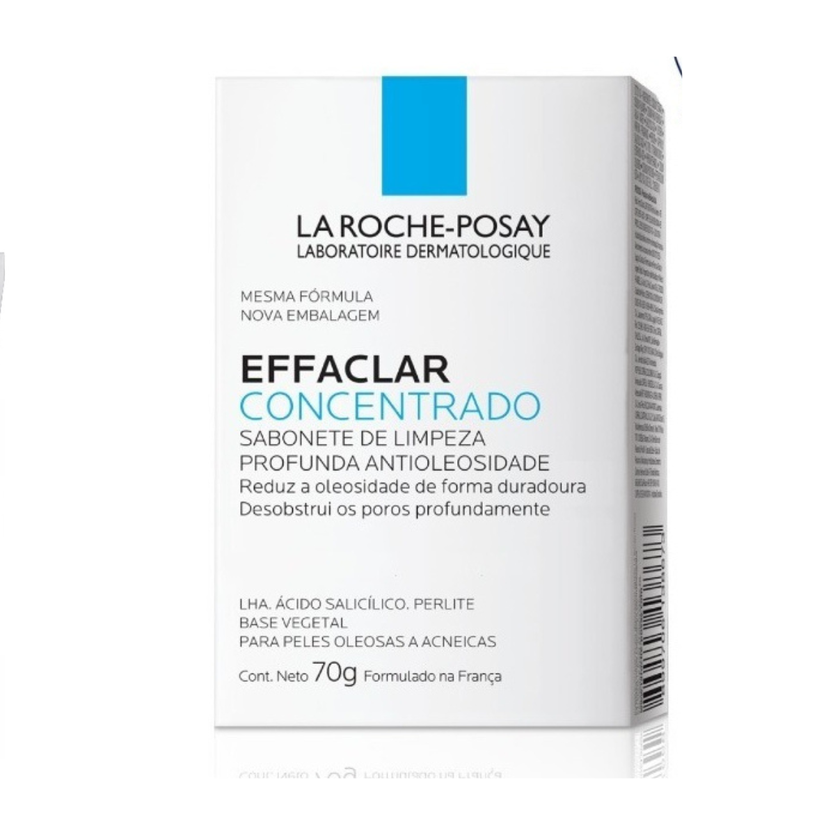 Sabonete em barra facial para peles oleosas e acneicas. La Roche-Posay Effaclar Concentrado controla da oleosidade e ajuda no cuidado antiacne.