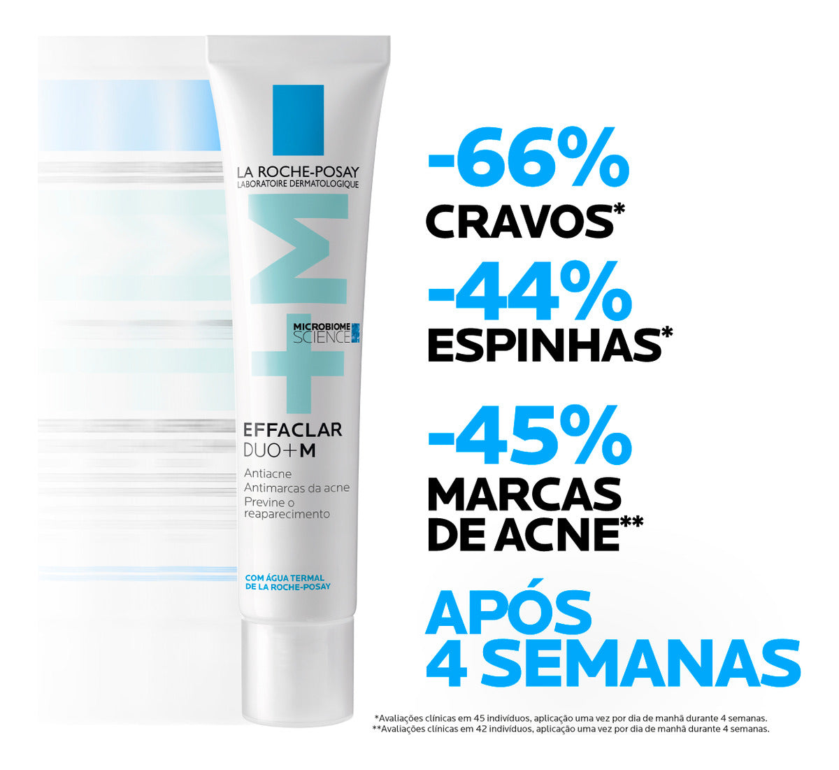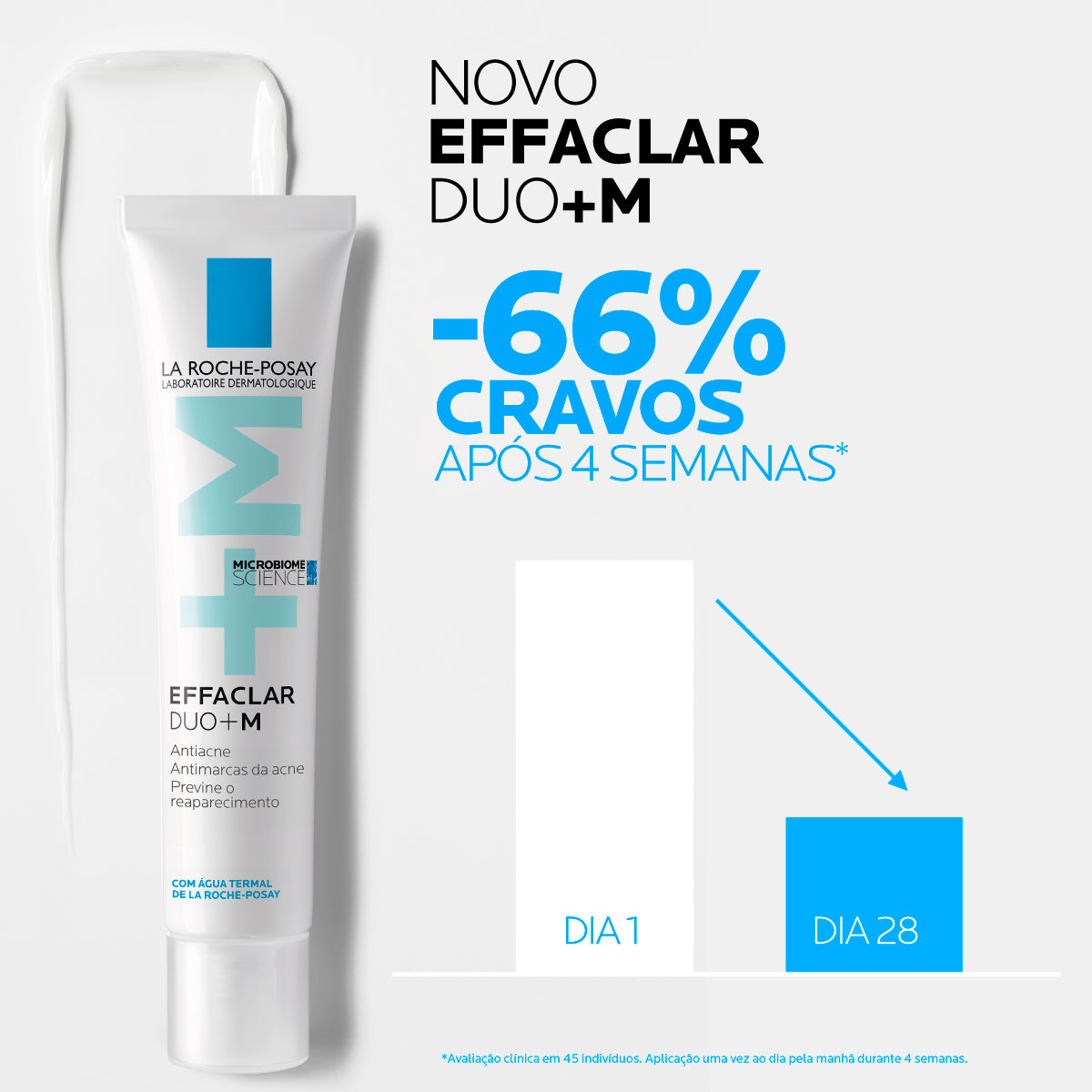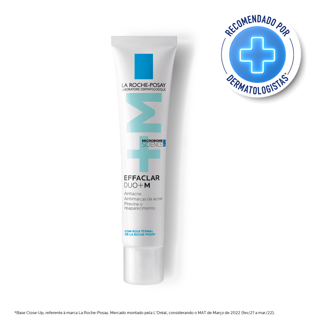 Tratamento antiacne para o rosto. La Roche-Posay Effaclar Duo+M equilibra o excesso de oleosidade, enquanto combate cravos e espinhas.