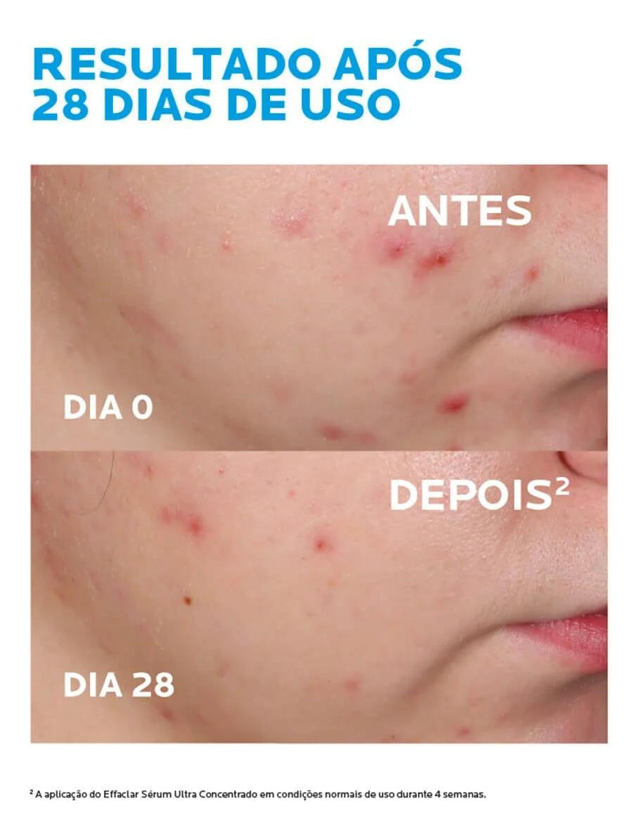 O Sérum Antiacne La Roche-Posay Effaclar Ultra Concentrado possui textura leve que não deixa aspecto oleoso e é rapidamente absorvida na pele. É formulado com um complexo ultra concentrado tri-ácido (Ácido Salicílico, Ácido Glicólico e LHA) que auxilia na renovação da pele, desobstrui os poros, evita o acúmulo de oleosidade e reduz a acne e as marcas de acne, e a Niacinamida, que proporciona ação calmante, diminuindo os desconfortos da pele.