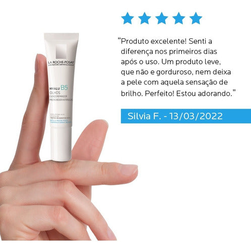 Redutor de Linhas para área dos olhos. La Roche-Posay Hyalu B5 suaviza as linhas e rugas enquanto melhora a aparência de olhar cansado.
