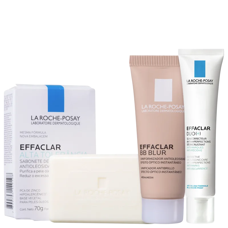 A linha Effaclar, de La Roche-Posay, apresenta uma solução dermatológica com passo a passo completo para peles que sofrem com espinhas ou alta produção de sebo. São diversos produtos, que abrangem inclusive rostos mais sensibilizados e/ou sensíveis.