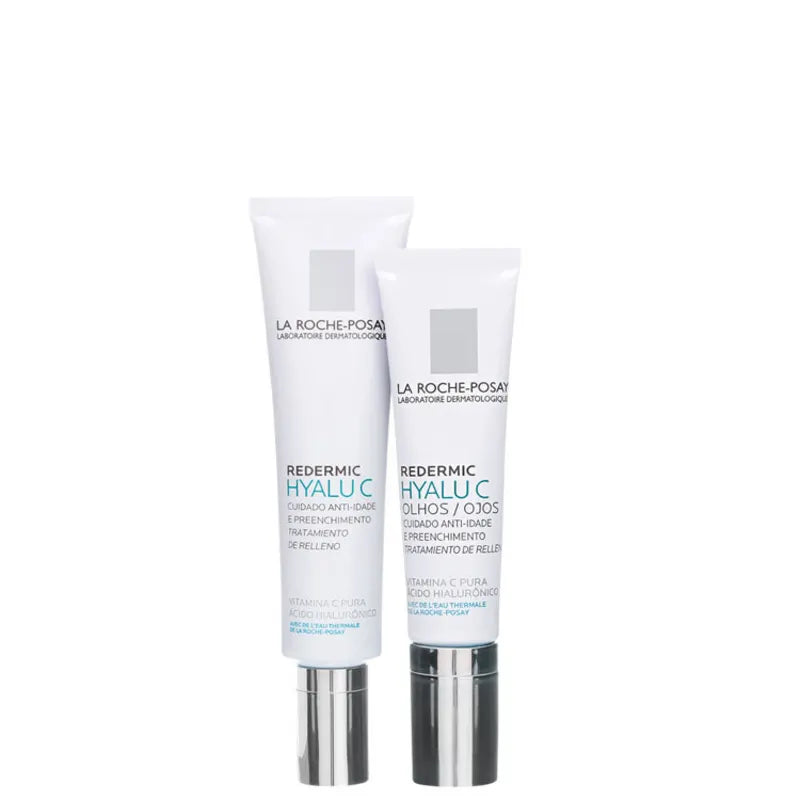 Kit de tratamento Redutor de Linhas para todos os tipos de pele. Kit La Roche-Posay Redermic Hyalu C Olhos e Face rejuvenesce ao preencher até rugas profundas, além de melhorar a firmeza e uniformizar o tom.