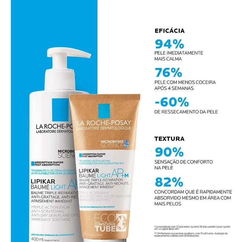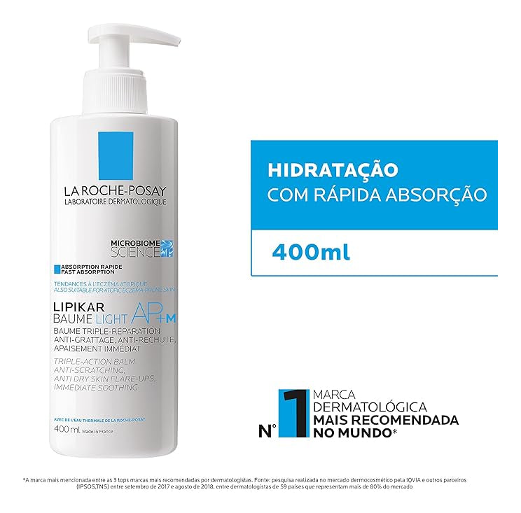 O Hidratante Corporal La Roche-Posay Lipikar Baume AP + M reequilibra o microbioma da pele, nutre e acalma imediatamente após o uso. Formulado para adultos, crianças e bebês, é suave, absorve rapidamente e garante um acabamento não oleoso e não pegajoso.