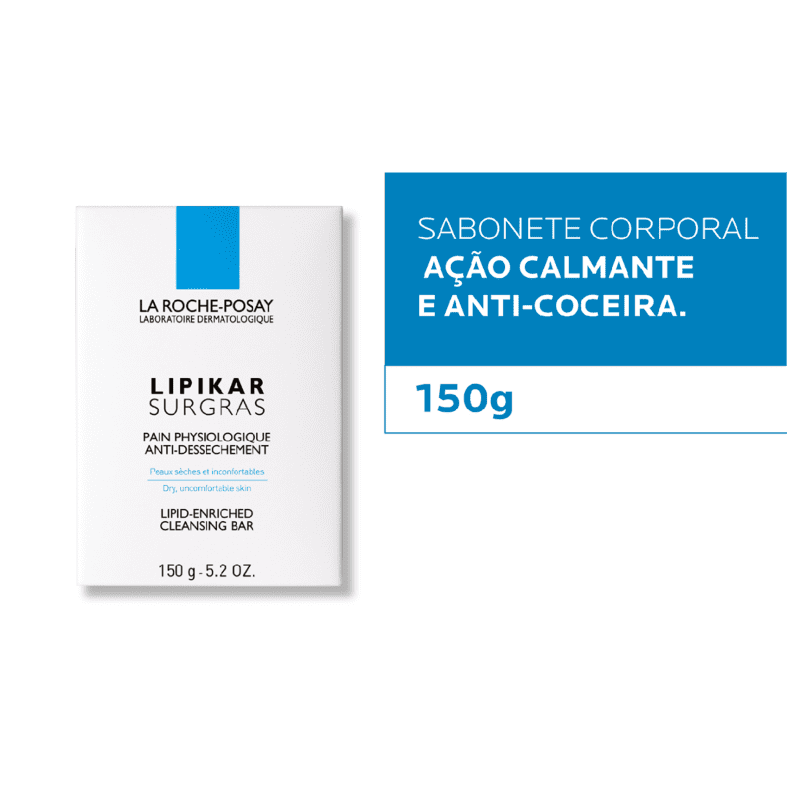 Sabonete em Barra La Roche-Posay Lipikar Surgras possui textura suave e cremosa que ajuda a limpar e acalmar a pele. Também conta com ação anti-coceira para evitar irritações ou vermelhidão no corpo. Super hidratante, ainda protege a pele dos efeitos de ressecamento causados pela água.