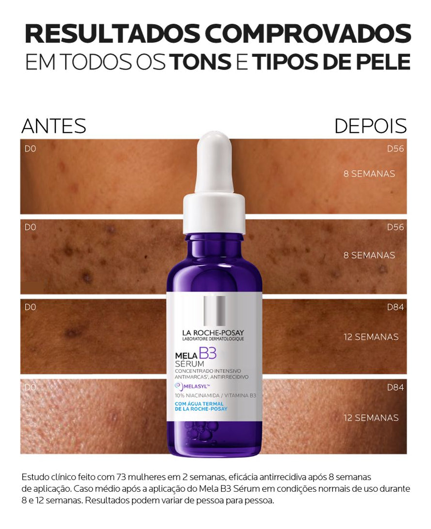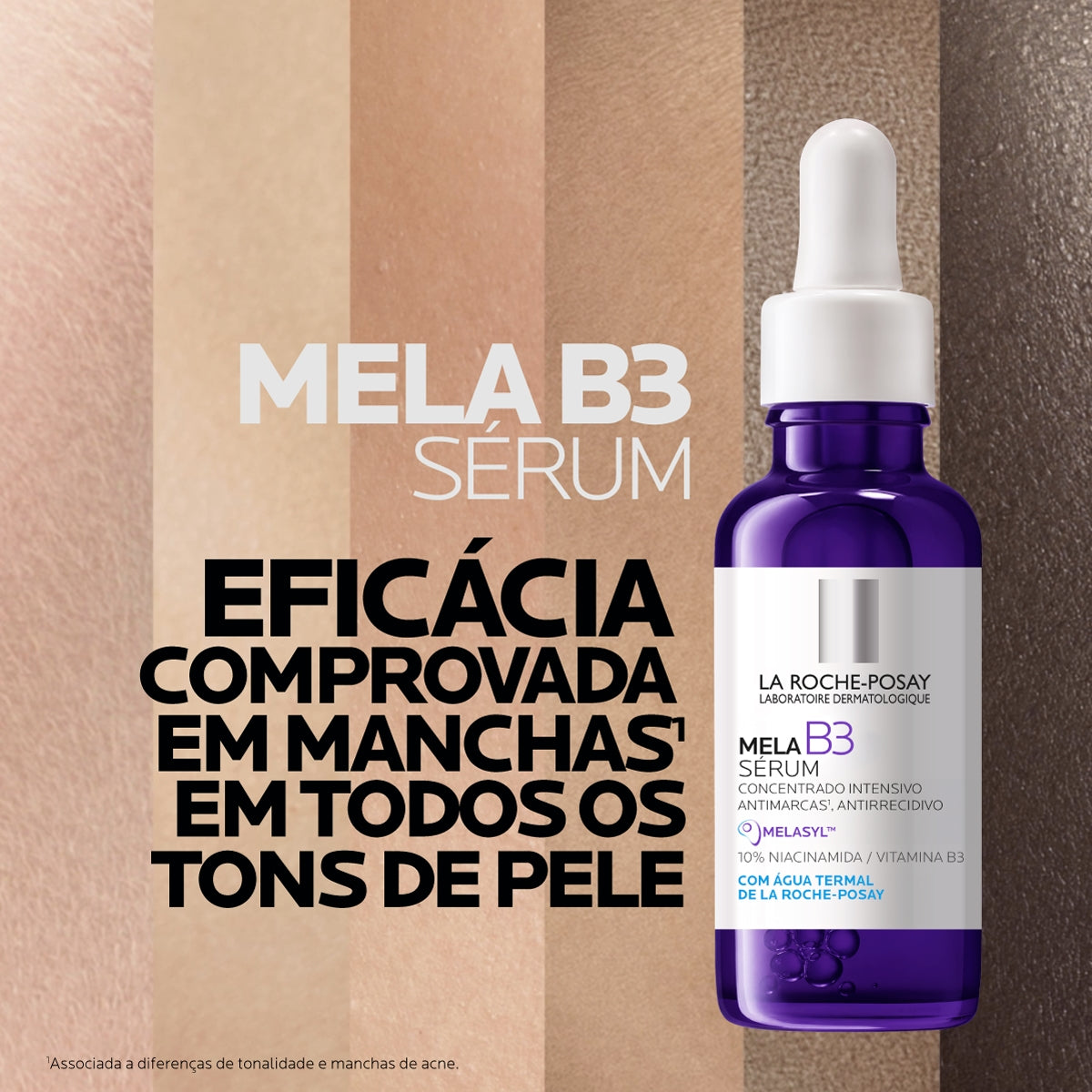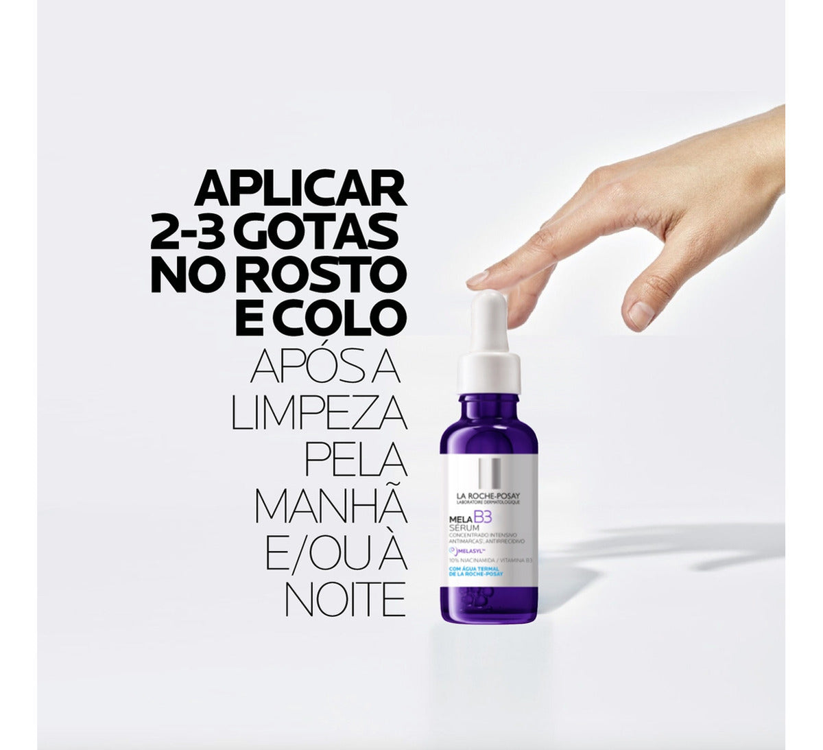 O Sérum Facial Redutor de Marcas La Roche-Posay MelaB3 é altamente concentrado e enriquecido com o Melasy™, um ativo poderoso patenteado pela La Roche-Posay com uma tecnologia inovadora para corrigir e prevenir a diferença de tons na pele. Sua ação reduz visivelmente marcas solares, pós acne e até mesmo as mais persistentes. Além disso, possui uma maravilhosa ação antioxidante que auxilia na renovação da pele.